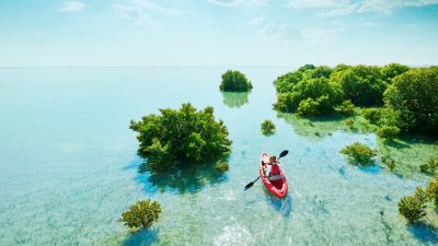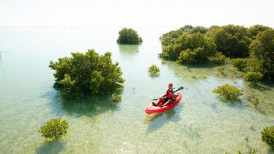 There’s a different feel to the surroundings as you enjoy kayaking through the Mangroves of Al Thakira. Al Thakira Natural Reserve is famous for its unique fauna, and one gets to see several migratory birds, crabs, and fishes as they kayak their way through the mangroves towards the Purple Island, another fine oasis to experience kayaking in Qatar. Our Kayaking team will meet you at our allocated meeting point and take you to our kayaking field. This excursion begins with a small introduction session lead by our kayak instructor from our campsite. We will provide water and juices for every candidate before starting the trip (Please take back the empty bottle with you because the mangrove area is in the list of preservative zones). In continuation, you will have 2 hours mangrove kayaking session lead by our team.